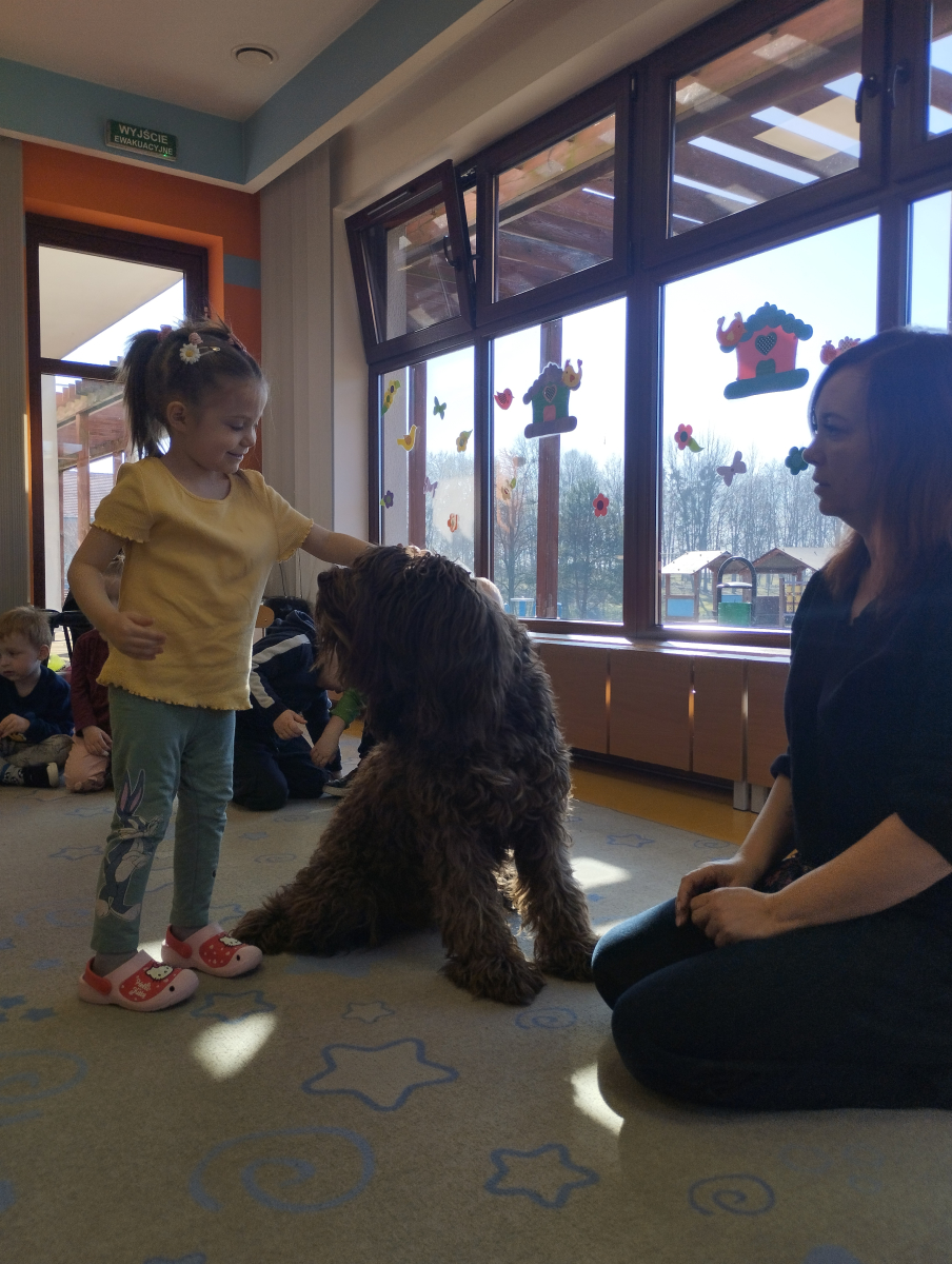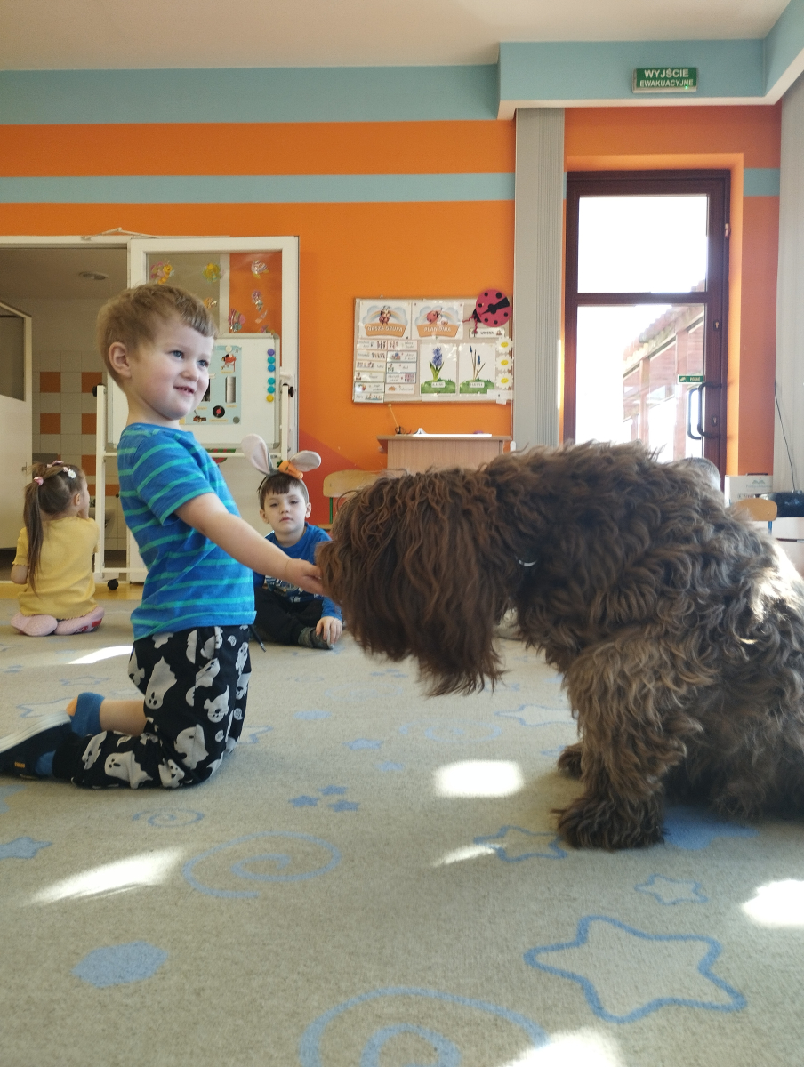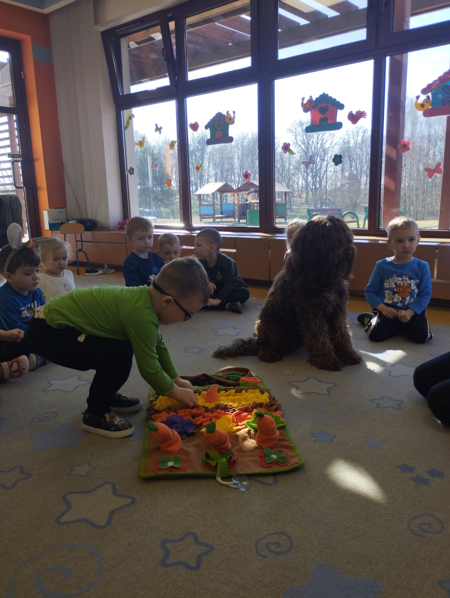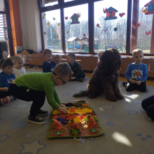 5 marca w grupie ,,Biedroneczek" odbyły się kolejne zajęcia z Dogoterapii z udziałem zaprzyjaźnionego już pieska Dakara. Podczas wspólnych zabaw oraz wykonywanych zadań, przedszkolaki poznały kolejne psie zwyczaje i upodobania, bawiąc się przy tym doskonale.