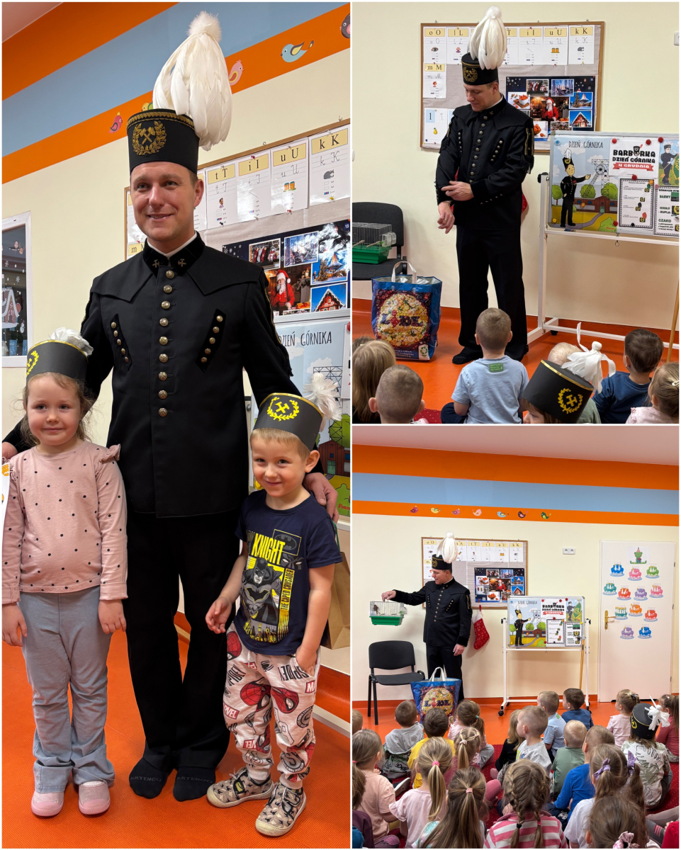 Z okazji zbliżającej się Barbórki zaprosiliśmy do przedszkola górników. Oddział w Łanach Wielkich gościł górnika 2 grudnia, a Miejskie Przedszkole w Sośnicowicach 3. Dzieci podczas spotkań poznały wiele ciekawostek o pracy w kopalni. Dowiedziały się kto jest patronką górników, jak wygląda roboczy strój i wyposażenie oraz dlaczego na mundurze górnika jest aż 29 guzików. W podziękowaniu obdarowaliśmy górników kopalniokami i oblatami, aby trochę osłodzić im ich święto.