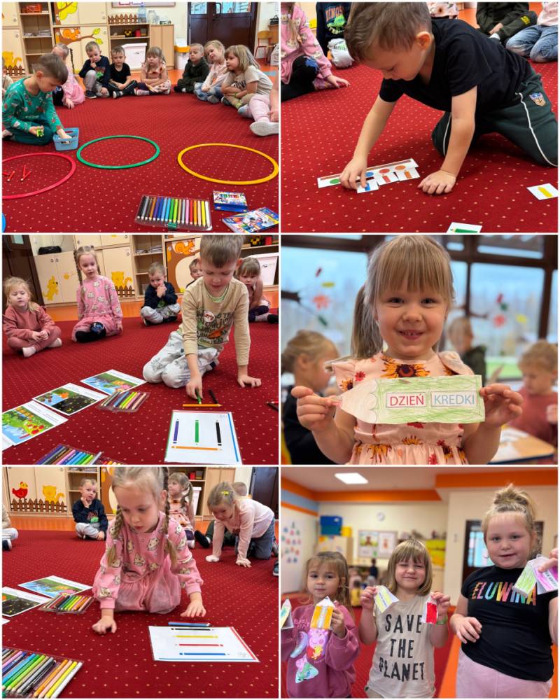 Kredki dodają koloru codziennej szarości, szczególnie w takim miesiącu jak listopad. Przedszkolaki świętowały dzień kredki poznając różne rodzaje kredek, segregując je, kodując na dywanie oraz tworząc piekne prace plastyczne! To dzięki kredce każde dziecko może wylać na papier to, co mu w duży gra :)