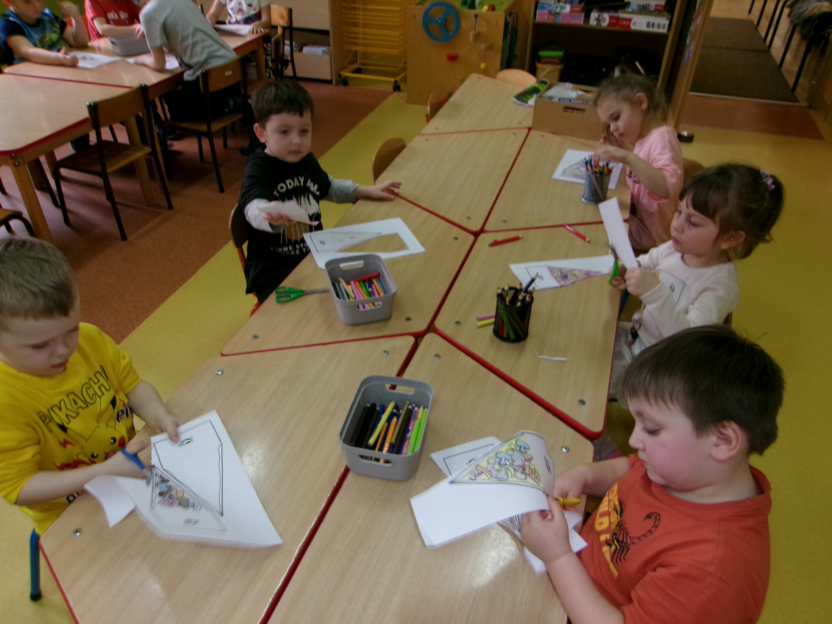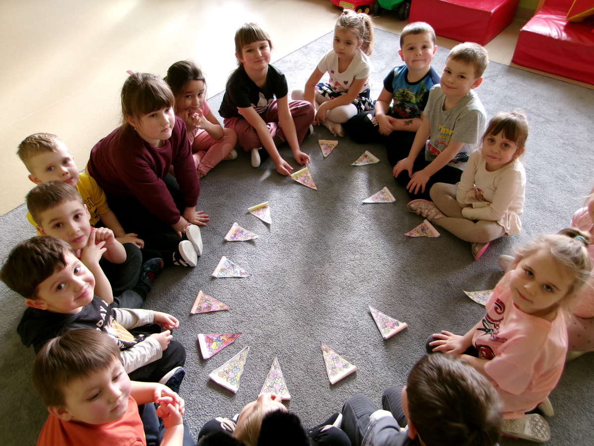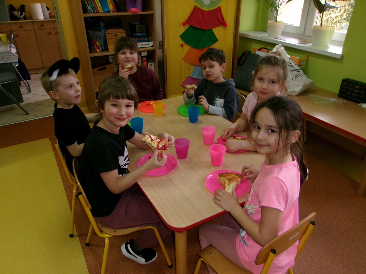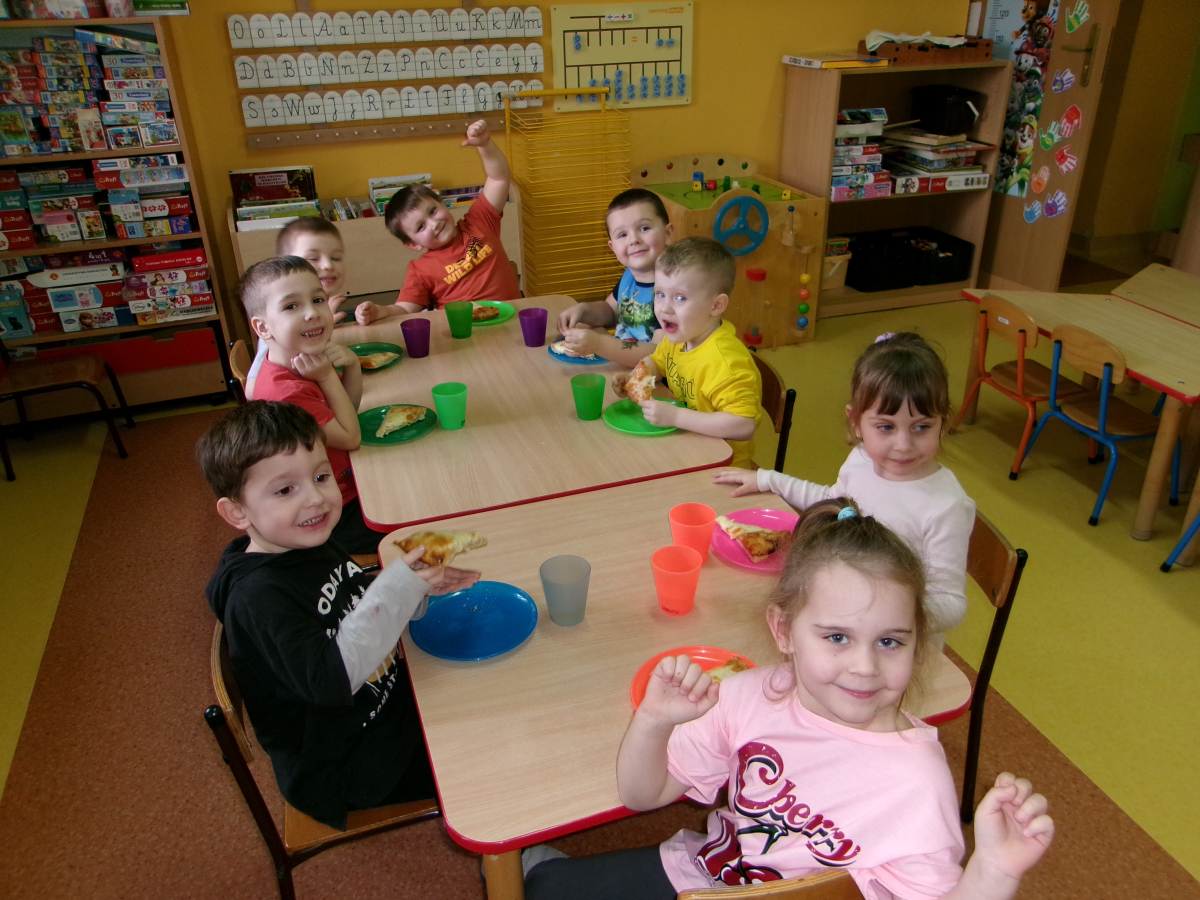 Przedszkolaki z grupy Motylki świętowały dzień pizzy. Dzieci świetnie się bawiły tworząc swoją papierową pizzę i próbując pizzę z pobliskiej pizzerii.