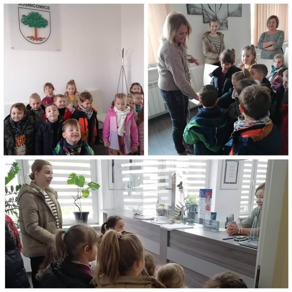 20 listopada dzieci z oddziału w Łanach Wielkich zawitały do głównego budynku swojego przedszkola, gdzie wzięły udział w warsztatach plastycznych. Pobyt ten był okazją do odwiedzenia także dwóch ciekawych miejsc w Sośnicowicach. Najpierw przedszkolacy zawitali do Urzędu Stanu Cywilnego w Sośnicowicach. Dzieci miały możliwość zwiedzenia Sali Ślubów a także dowiedzenia się w jaki sposób można ubiegać się o wydanie dowodu osobistego. Następnie udaliśmy się do Studia Foto - Video IWONA. Pani Iwona Mandel opowiedziała dzieciom o znajdujących się w studiu sprzętach potrzebnych do wykonywania różnego rodzaju zdjęć a także pokazała, jakimi aparatami robiła zdjęcia w ciągu tych wszystkich lat swojej pracy. Pani Iwona zrobiła także całej grupie pamiątkowe zdjęcie. Bardzo dziękujemy za możliwość zwiedzenia ciekawych miejsc w Sośnicowicach.