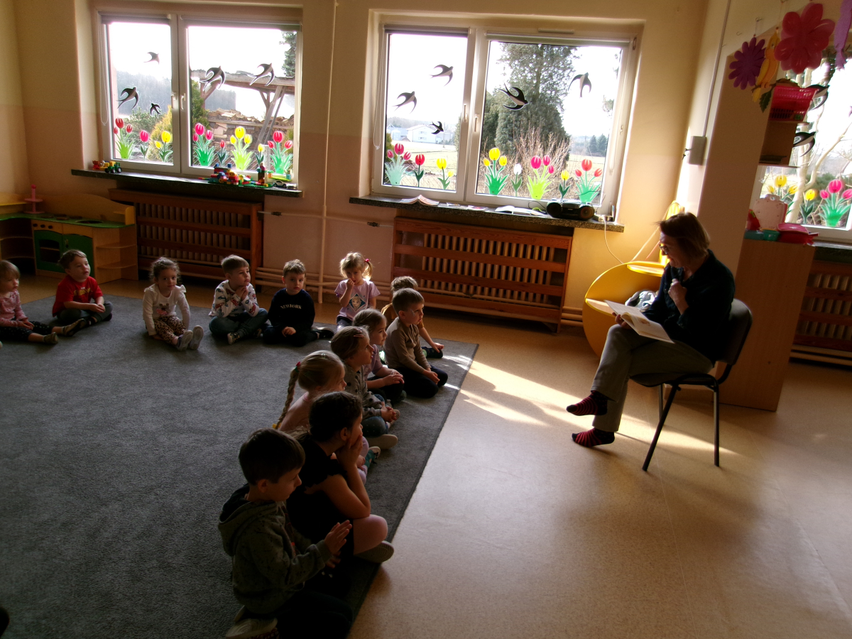 10 marca grupę Sówek odwiedziła babcia Marty i Patryka - pani Sonia. Pani Sonia w ramach akcji "Cała Polska czyta dzieciom" przeczytała bajkę pt. "Cudowny Konik" (M. Nowak-Njechorński). Dzieciom bardzo spodobała się. Dziękujemy za miłe spotkanie i drobne upominki.