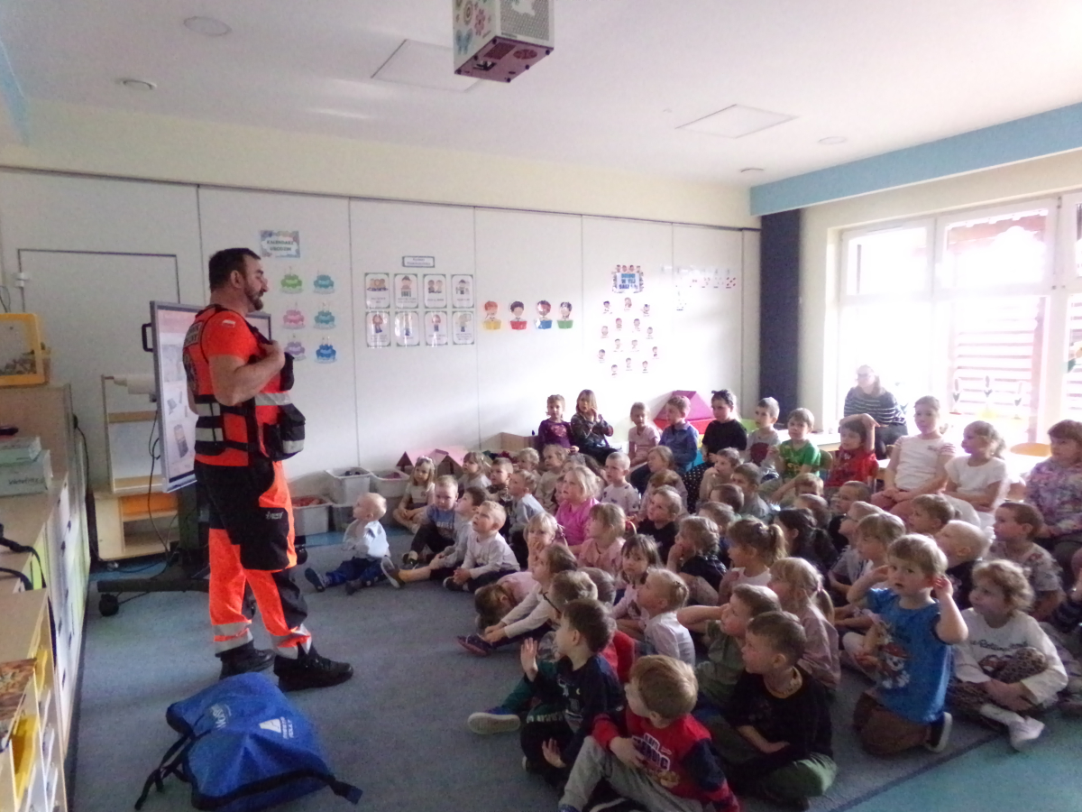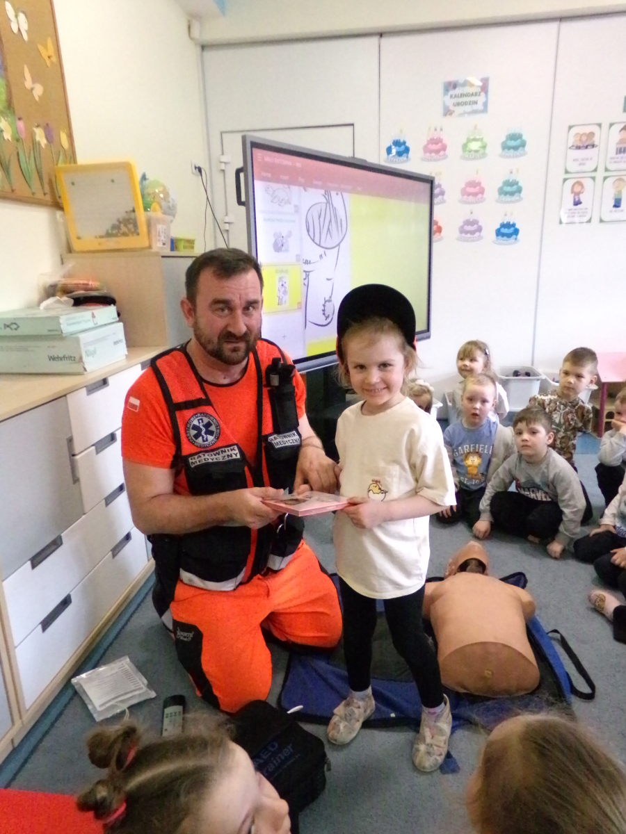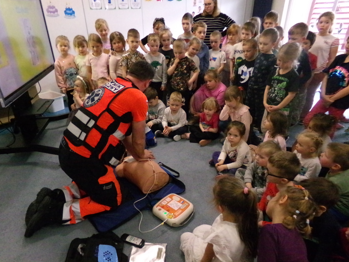 W piątek 13 marca nasze przedszkole odwiedził pan Marcin. Przedszkolaki zapoznały się zasadami udzielania pierwszej pomocy, Dzieci słuchały z dużym zaangażowaniem, chętnie udzielały się podczas ćwiczeń. Dziękujemy panu M arcinowi za wspaniałe spotkanie!