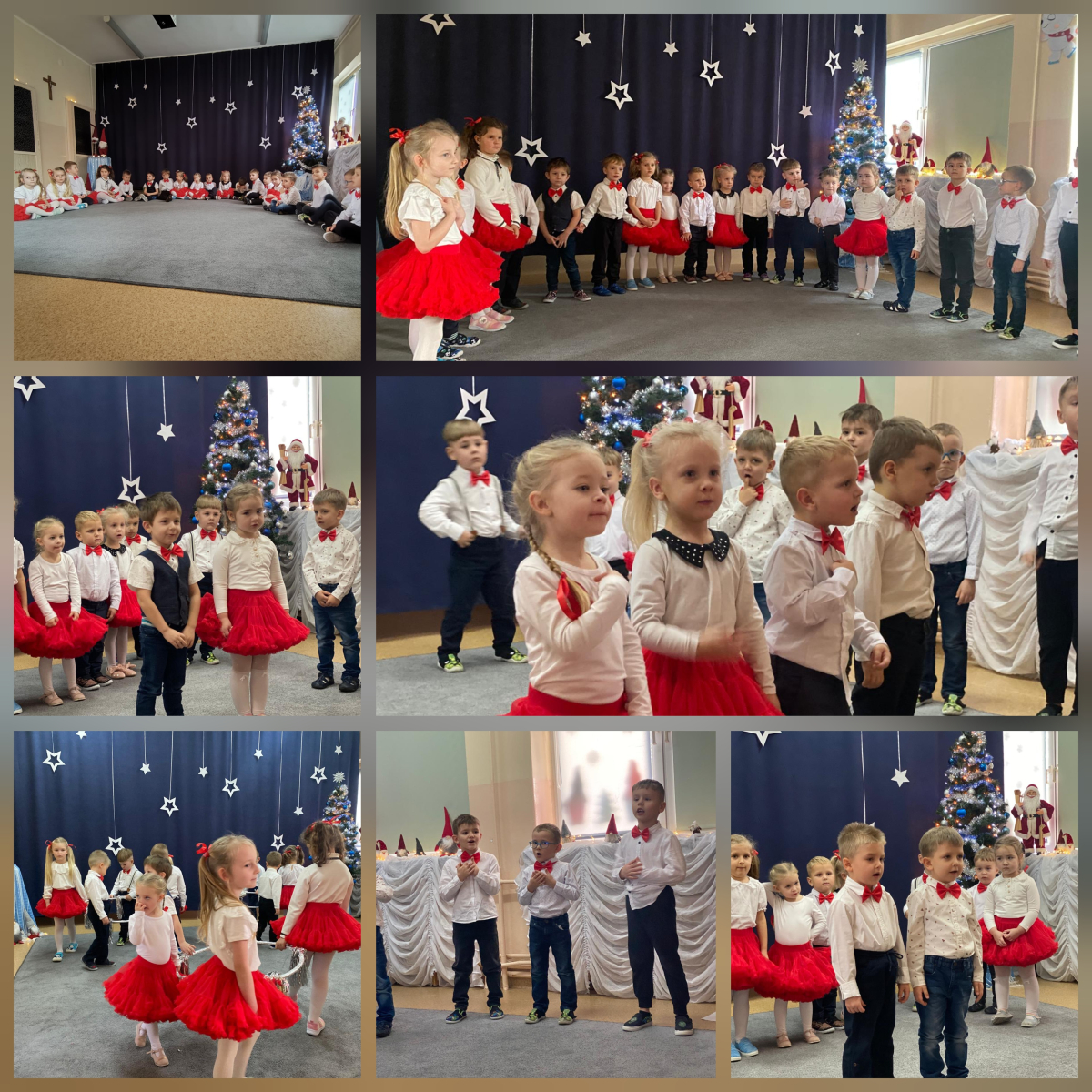 W poniedziałek 8 grudnia Jeżyki zaprosiły wszystkich do "Gwiezdnej szkoły". Na przedstawieniu obecny był Pan Nowak - Wiceburmistrz. Kolejnego dnia Żabki zabrały wszystkich do krainy elfów, by pomóc Mikołajowi zorganizować święta. Biedronki zaśpiewały dla swoich rodziców i wspólnie z nimi udekorowały pierniczki. Pszczółki przeniosły się do Aniołkowa, a Motylki i Sówki wyprawiły prawdziwie świąteczne rodzinne spotkanie!