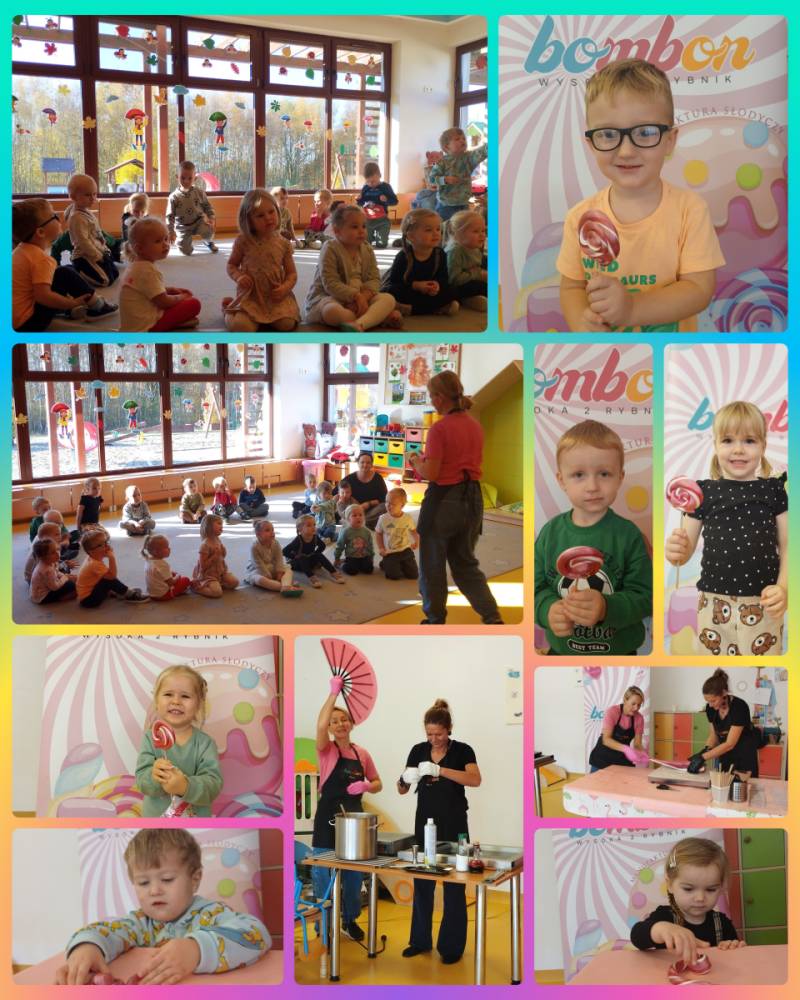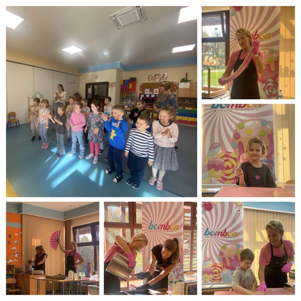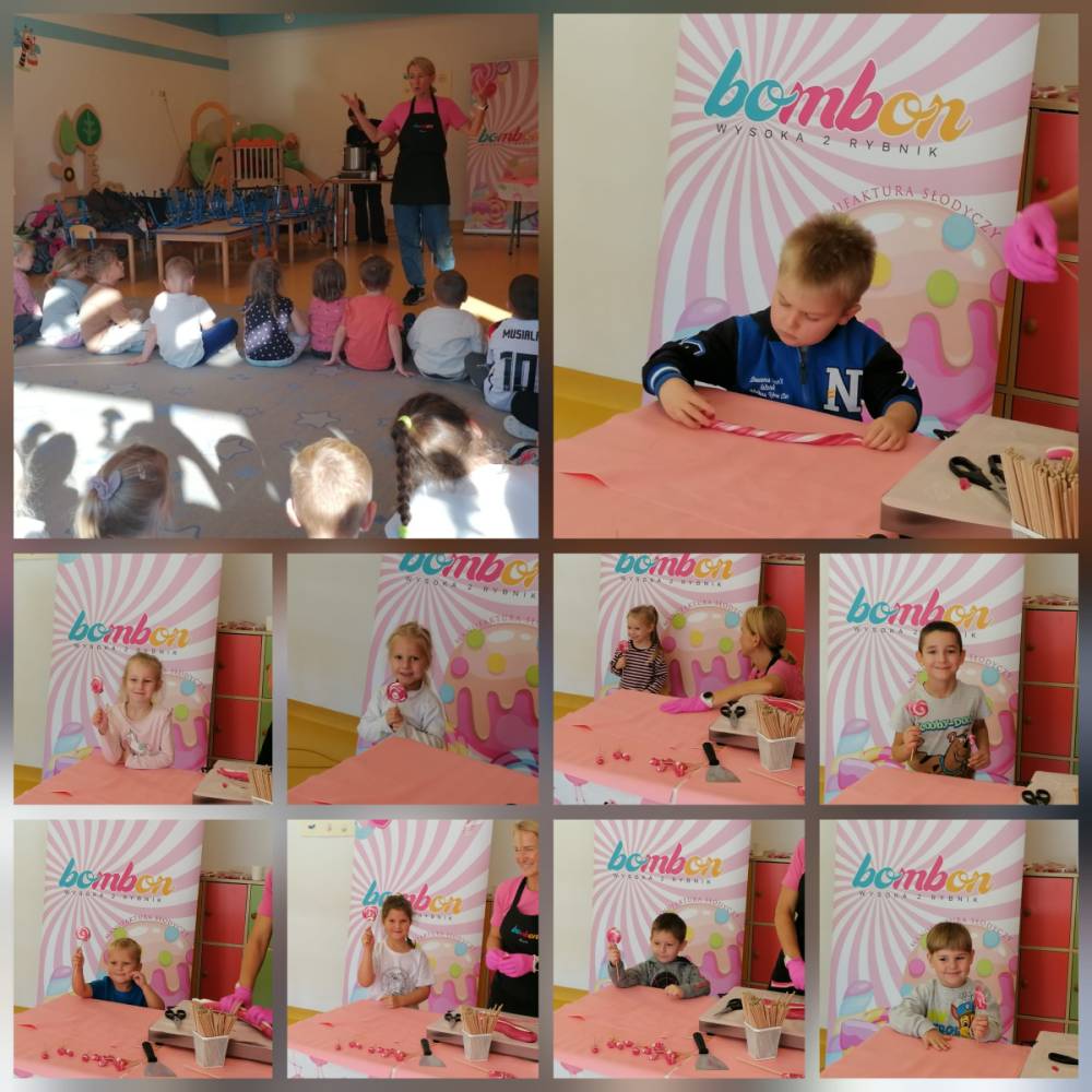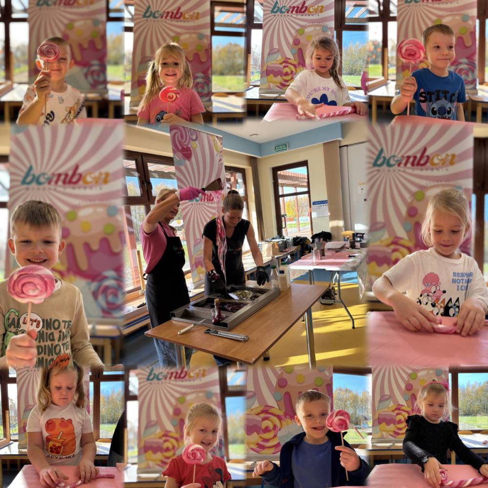 5 i 7 lisistopada przedszkolaki uczestniczyły w warsztatach cukierniczych. Dzieci poznały tajniki sztuki karmalarskiej. Słuchały bardzo uważnie i przyglądały się paniom, które na codzień prowadzą sklep "Bombon" w Gliwicach. Dzieci uczestniczyły w całym procesie tworzenia lizaków, by na końcu samemu ukręcić swojego :) było słodko i bardzo radośnie!